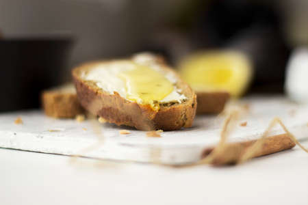 Toasted loaf. Tasty bread. Bread for breakfast.