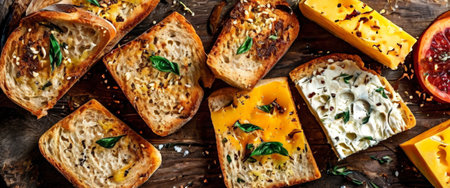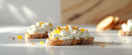 Delicious wheat bruschetta with cream and fresh toppings for gourmet appetizers