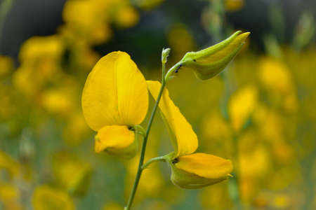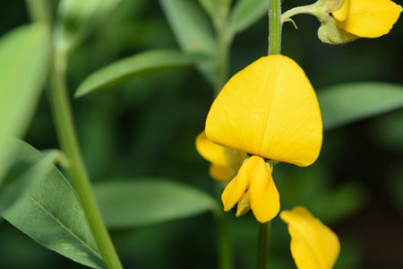sunhemp flower or Crotalaria juncea. known as brown hemp, Indian hemp, Madras hemp, or sunn hemp, is a tropical Asian plant of the legume family. Thailand and indea flower.