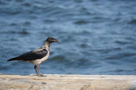 Crow at the seaside close up view
