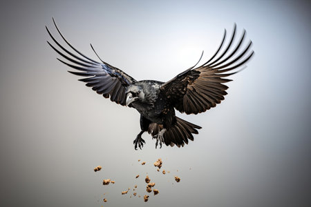 Close-up Crow Picture: A Detailed and Intimate Look at a Majestic Bird flying in the wild