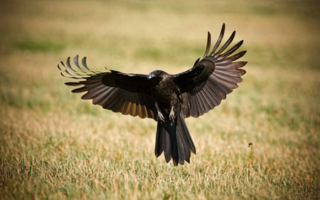 Ethereal Crow Soaring over Lush Green Grass Field - Captivating 3:2 Aerial View