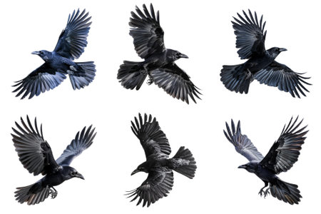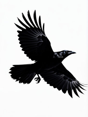 Image of a crow is flapping its wings on a white background. Wild Animals. Birds. Illustration. Generative AI.