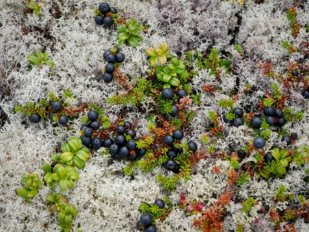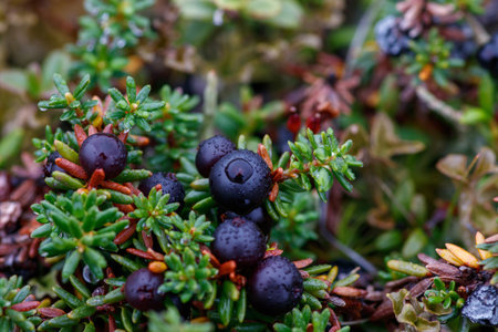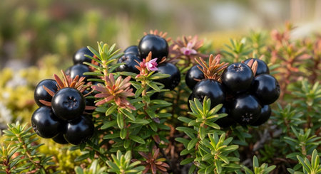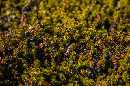 Closeup of Crowberry (Shiksha) on a sunny day in tundra