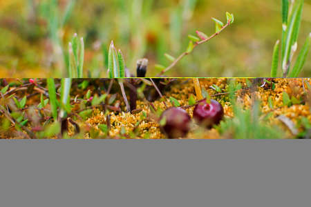 Wild berries growing on a mountain hillside in autumn in Norway. Tasty food for bears.