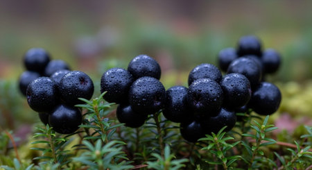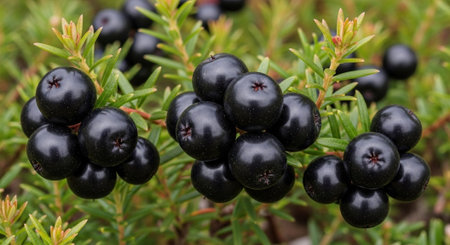 Close up shot of ripe Black crowberry Empetrum nigrum