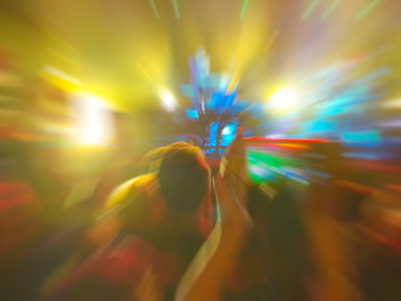 Abstract motion blur effect. Bokeh lighting in concert with audience.