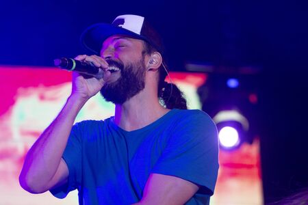 LOULE, PORTUGAL: 31st AUGUST, 2019 - Music artist, Gabriel o Pensador, performs on White Night, a festival on the city of Loule, Portugal.