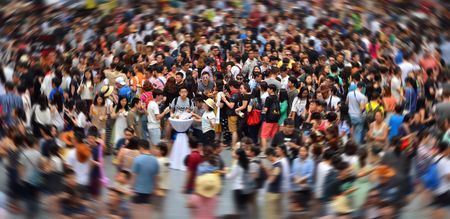 Bangkok, Thailand - October 22, 2016 : Thai people and foreigner crowd in funeral of of His Majesty King Bhumibol Adulyadej.