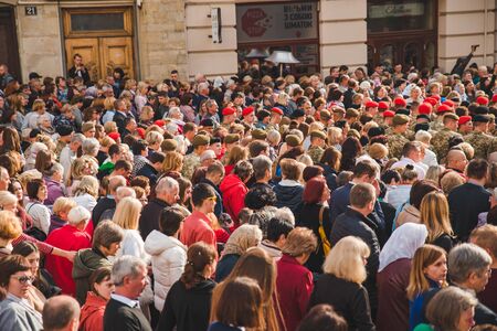 LVIV, UKRAINE - October 7, 2018: religious procession at city streets. nuns and monks