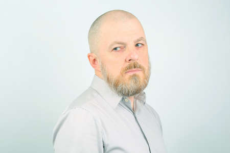 Portrait of a middle aged beard man, facial expression details.