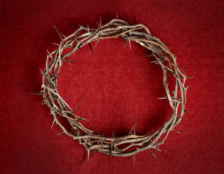 Crown of thorns on red background cloth