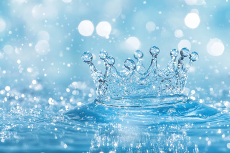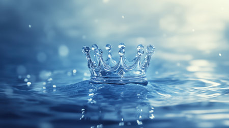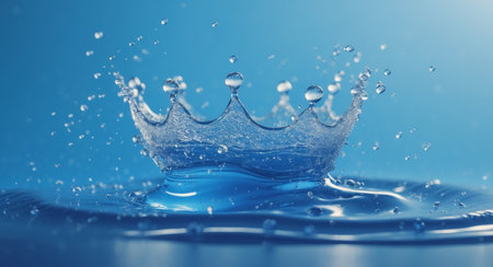 AI Generated. Water Splash Crown Shape in Blue Background