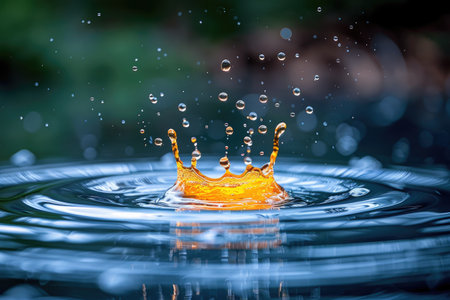 Water droplet impact creates a vibrant crown splash effect