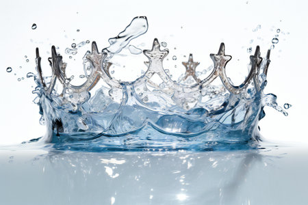 AI Generated. Dynamic Blue Water Splash Crown Shaped Droplets on White