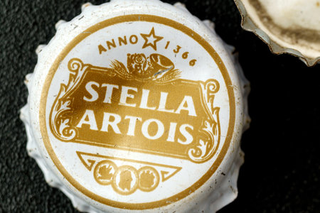 Tyumen, Russia-February 15, 2023: Old Stella artois beer lid. Stella Artois. Belgium Premium Lager can.