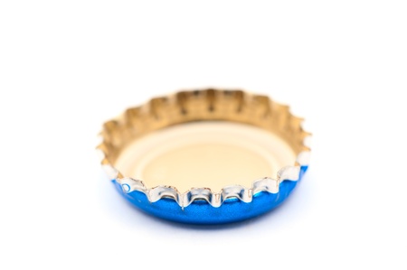 Beer bottle cap closeup on white background