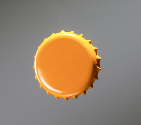 Yellow Metal Bottle Cap With Copy Space Isolated on neutral Background.