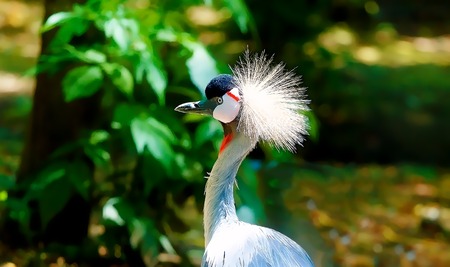 A closeup shot of a beautiful Crowned crane in the park with blurred background