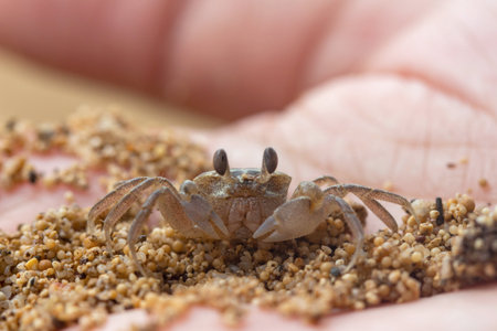 Beautiful small sand bubbler crab (presumably Dotilla fenestrata) on the beach of Toliara, Madagascar