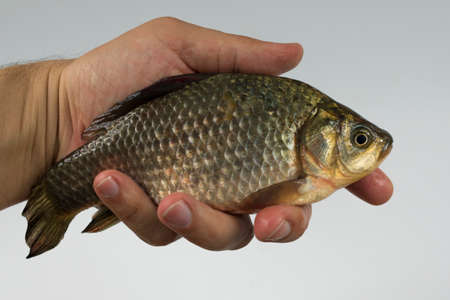 crucian carp caught in his hand fisherman
