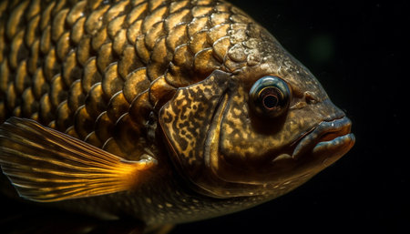 The gold colored fish eye in close up underwater, a beauty in nature generated by artificial intelligence
