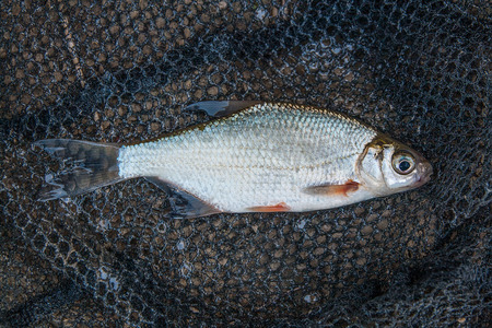 Freshwater fish just taken from the water. Several ablet or bleak fish, roach and bream fish natural background. Catching fish - common bream, common roach, common bleak and silver bream or white bream.