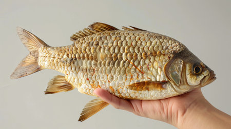 alive caught river carp in hand on a white background