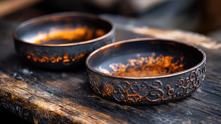 Experience the beauty of these elegant handcrafted ceramic bowls, featuring intricate designs and rich textures, perfect for enhancing any dining setting.