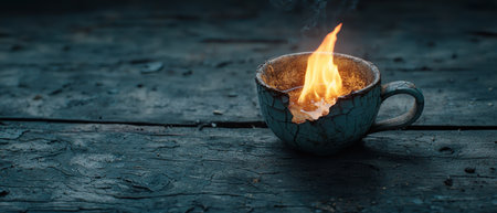 exquisite vintage cup intricately repaired from broken pieces stands silently on weathered wood embodying the complexities of forgiveness and resilience in relationships.
