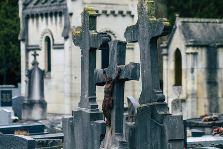 Reims France March 04, 2021 Ancien graves in the cemetery of the North, Built at the end of the 18th century and contains the remains of most of the citizens who distinguished themselves in the city