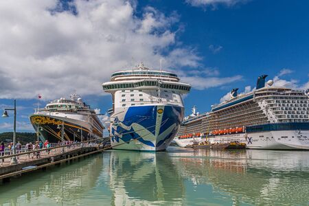 BASSETERRE, SAINT KITTS - November 29, 2017 Port Zante is the harbour in Basseterre, Saint KItts, which has grown into a shopping mecca thanks to cruise ships such as NCL and Royal Caribbean