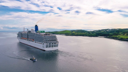 Killybegs, Ireland - July 22 2022: MS Arcadia is a cruise ship in the P and O Cruises fleet leaving after visiting Killybegs the first time