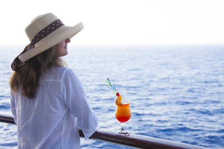 Girl on the deck drinking a cocktail day summer