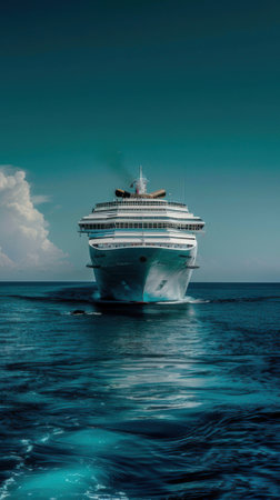 Luxury cruise ship at sea, endless ocean view, elegant, adventurous