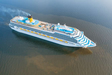 25 June 2019, Saint Petersburg, Russia. Costa Magica cruise ship in the open sea aerial view