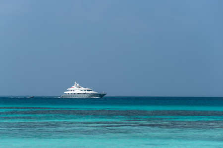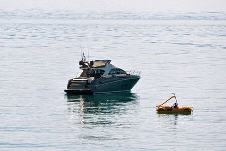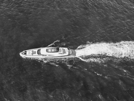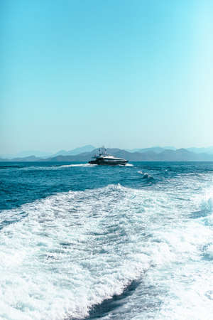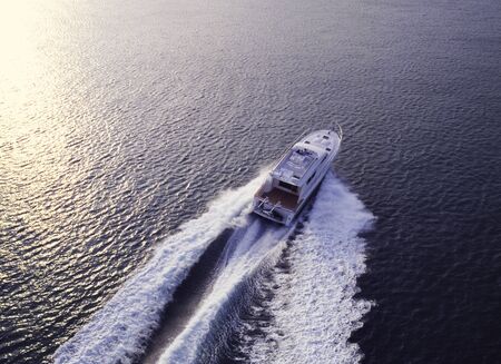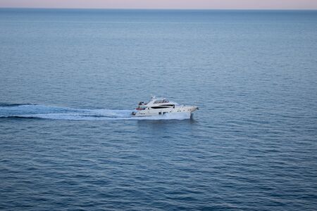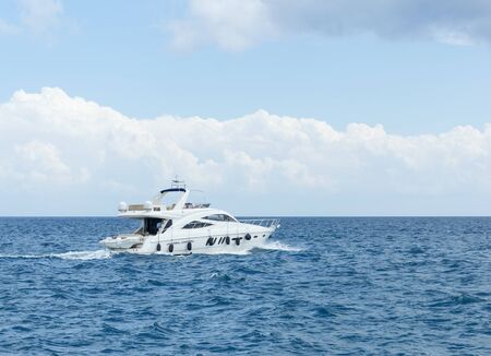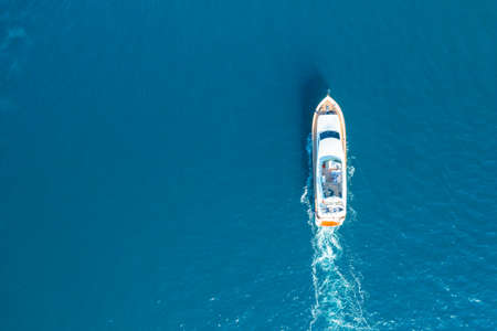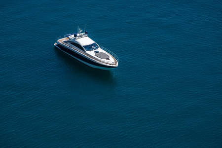 Boating and yachting tourism. Luxurious lifestyle. Vacations on summer. Yacht at sea. Sea vacation on summer. Travel by sea. Luxury boat motor yacht. Luxury yacht top view. Ocean and sea