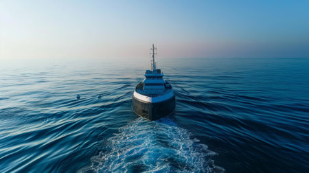 Cargo ship sailing in calm sea waters, created using generative ai technology