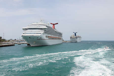 Two cruise Ships docked side by side in Nassau Bahams
