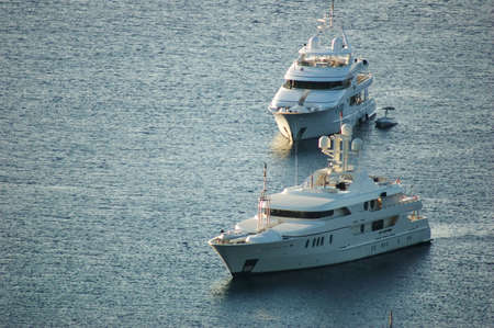 Luxury yachts sitting in a greek bay at sunrise