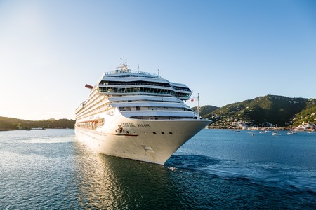 CORFU, GREECE, SEPTEMBER 27, 2019: Tui Discovery Valletta cruiser anchored in city port.