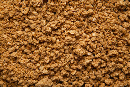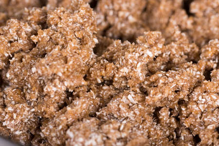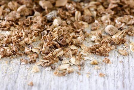 Organic homemade granola breakfast cereal background texture with oats and bran.