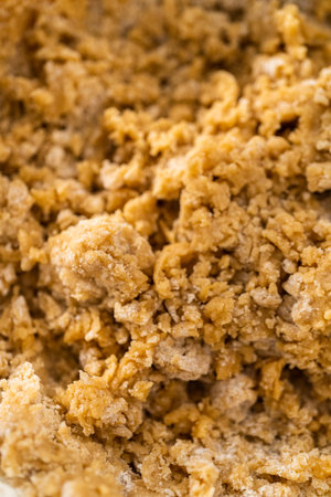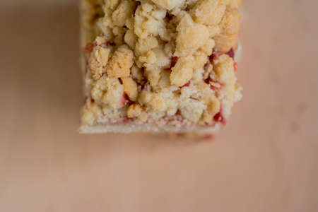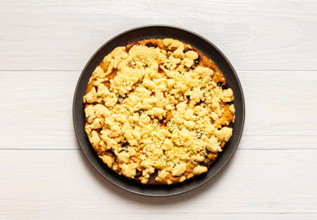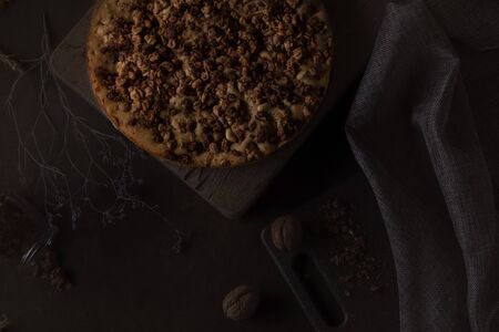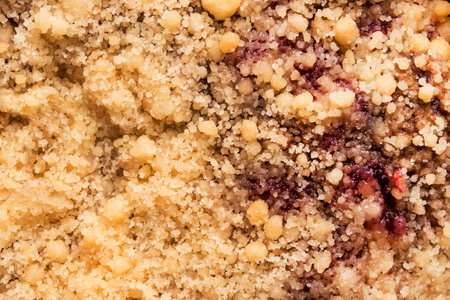 Pastry baked crumble cake closeup as a background