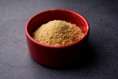 Gehu Dalia or Daliya also known as Cracked or Broken Wheat, served in a bowl or spoon, healthy Indian food