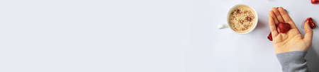 Cup drink for Breakfast in the hands of lovers. Selective focus.people