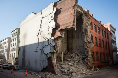 concrete building after city disaster aftermath earthquake, created with generative ai