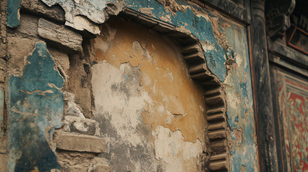 Old wall in process of demolition revealing layers of history and texture in urban landscape