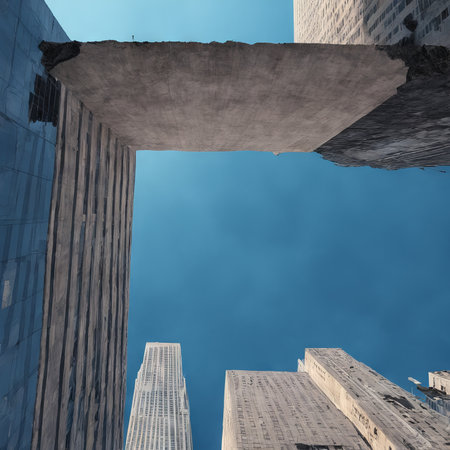 Skyscraper crushing dust view. Concrete wall. Generate Ai