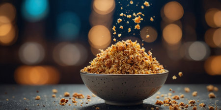 AI Generated. A bowl of food with a lot of crumbs on it