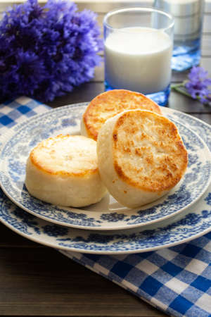 Cheesecakes from cottage cheese on a wooden Board of home cooking, selective focus.